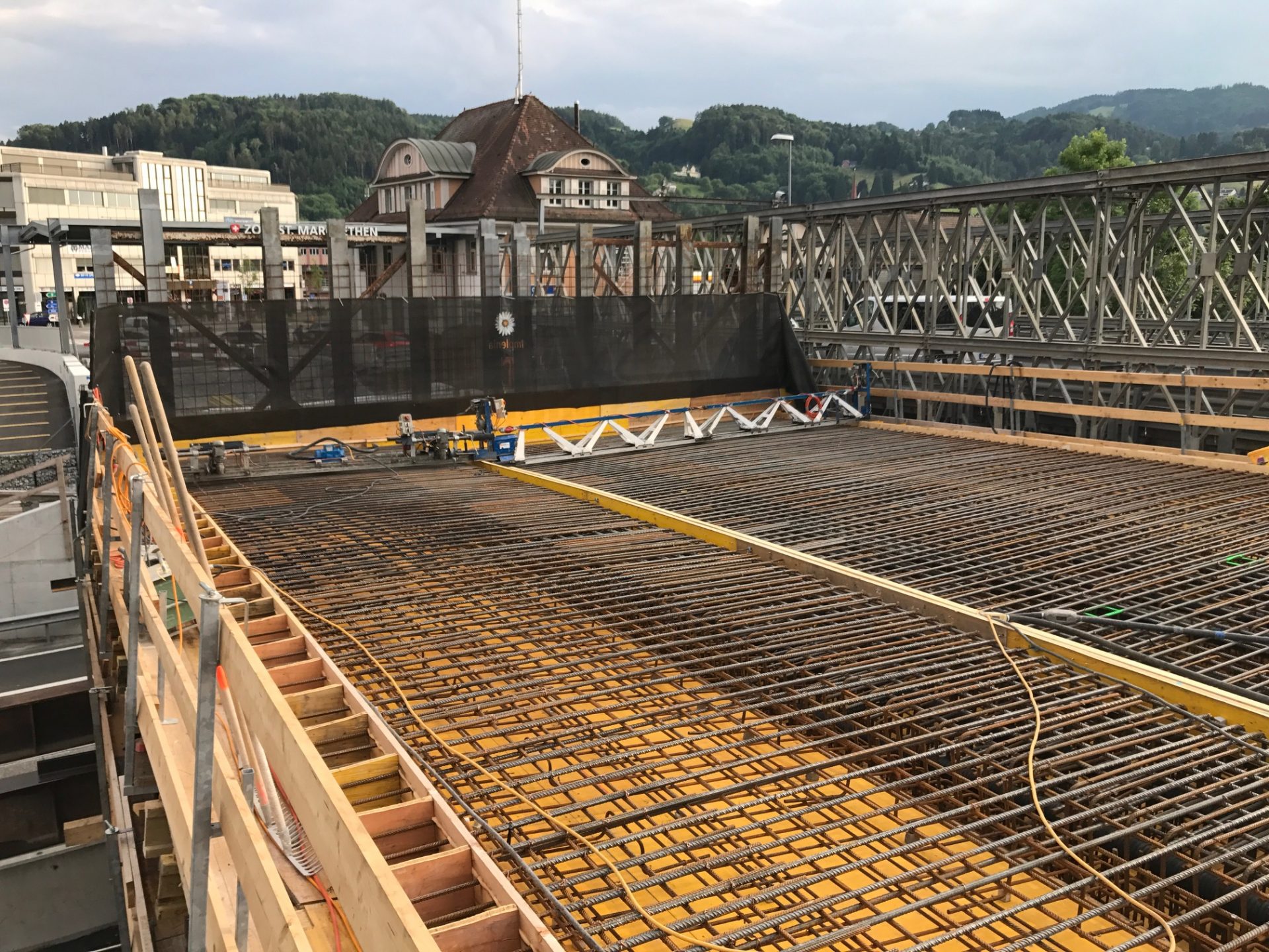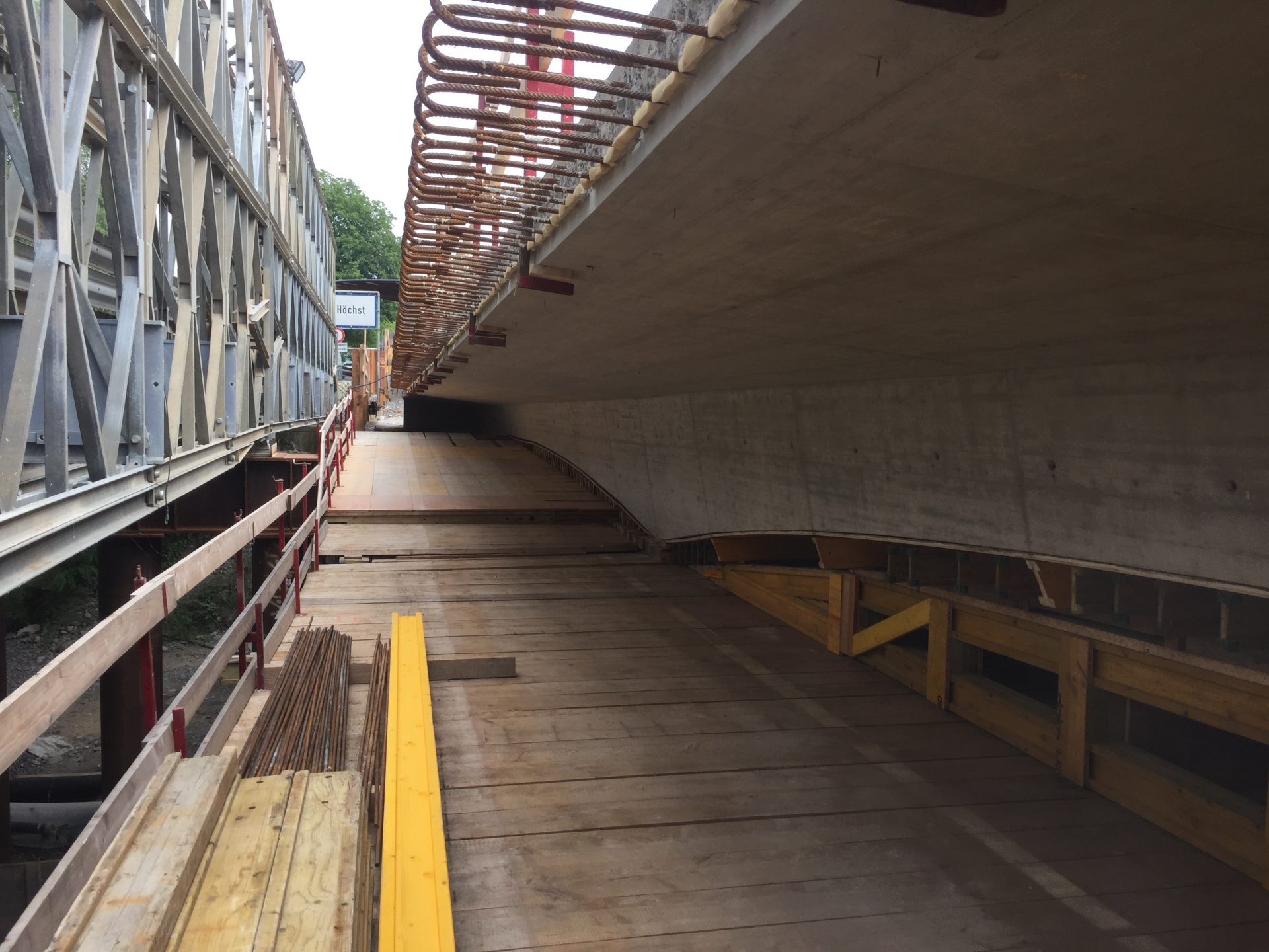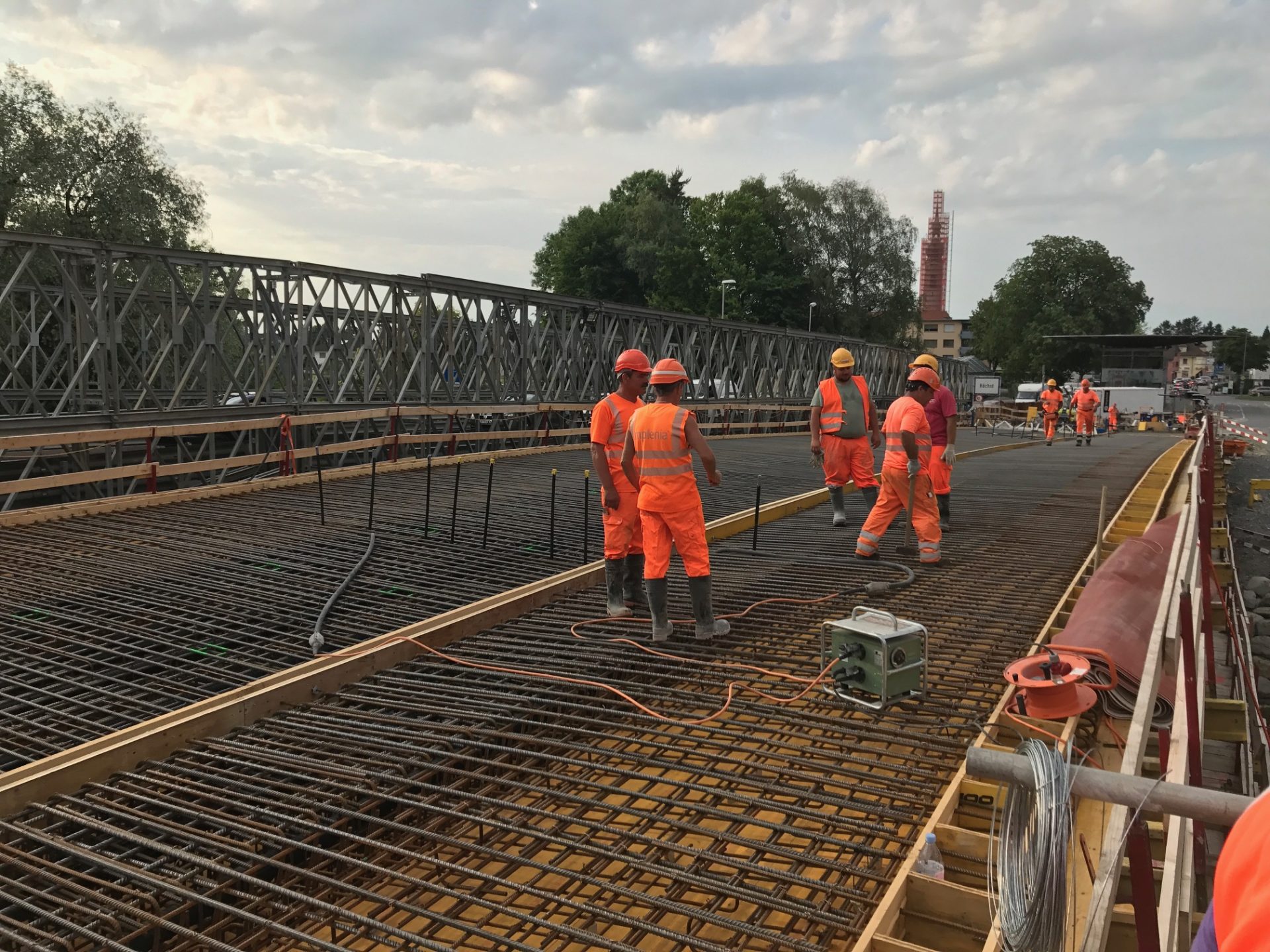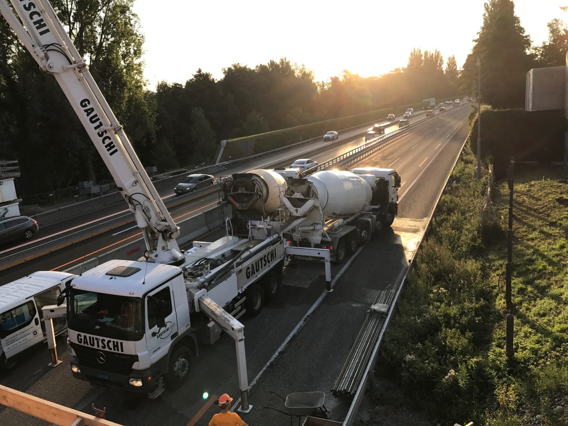 Das Autobahnstück zwischen Rheineck und St. Margrethen welches sich auf 7,3 km erstreckt wurde nach fast 40 jährigem Bestehen grundsaniert. Diverse Brückenquerungen, Werkleitungen und Fahrbahnsanierungen sowie die Erstellung einer Lärmschutzwand waren nur ein Teil der grossen Sanierung. Von der ARGE Rheintal wurden wir mit der Lieferung von Brückenelementen sowie den Transportbetonlieferungen beauftragt. Highlight der Baustelle war dabei die neue Zollbrücke welche mit 660m3 Betoniervolumen in einem Guss erstellt wurde. Extreme Anforderungen an die Betonqualität, erschwerte Zu- und Wegfahrtsbedingungen sowie Wochenend- und Nachteinsätze haben flexible Maschinen und motiviertes Personal gefordert.