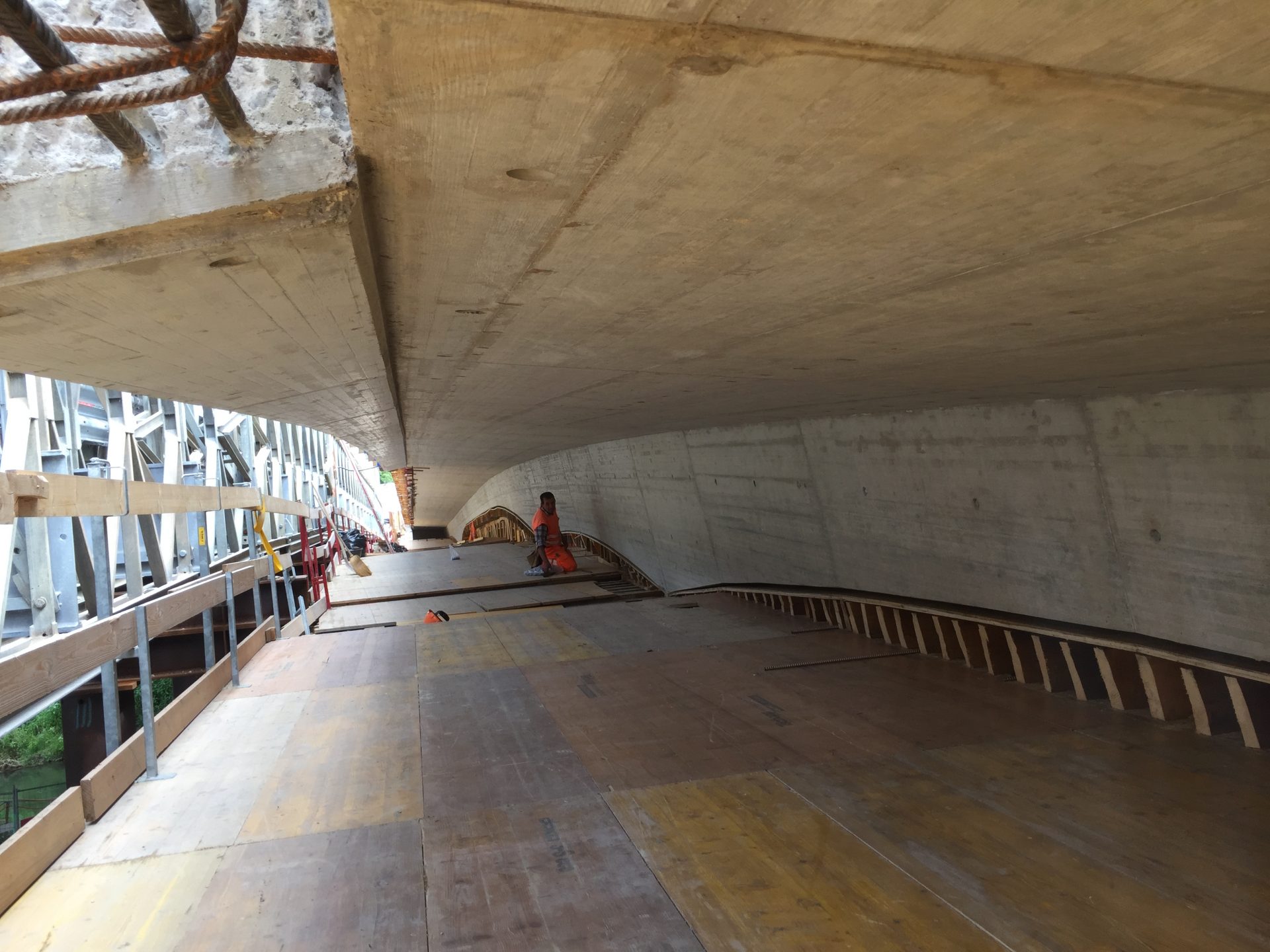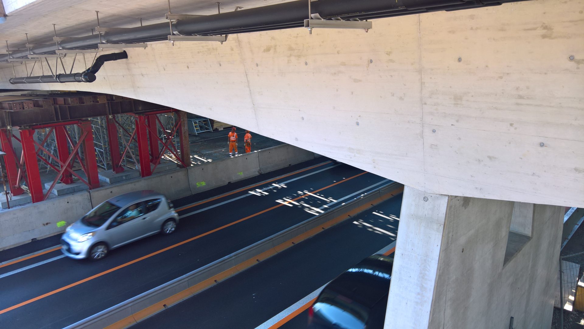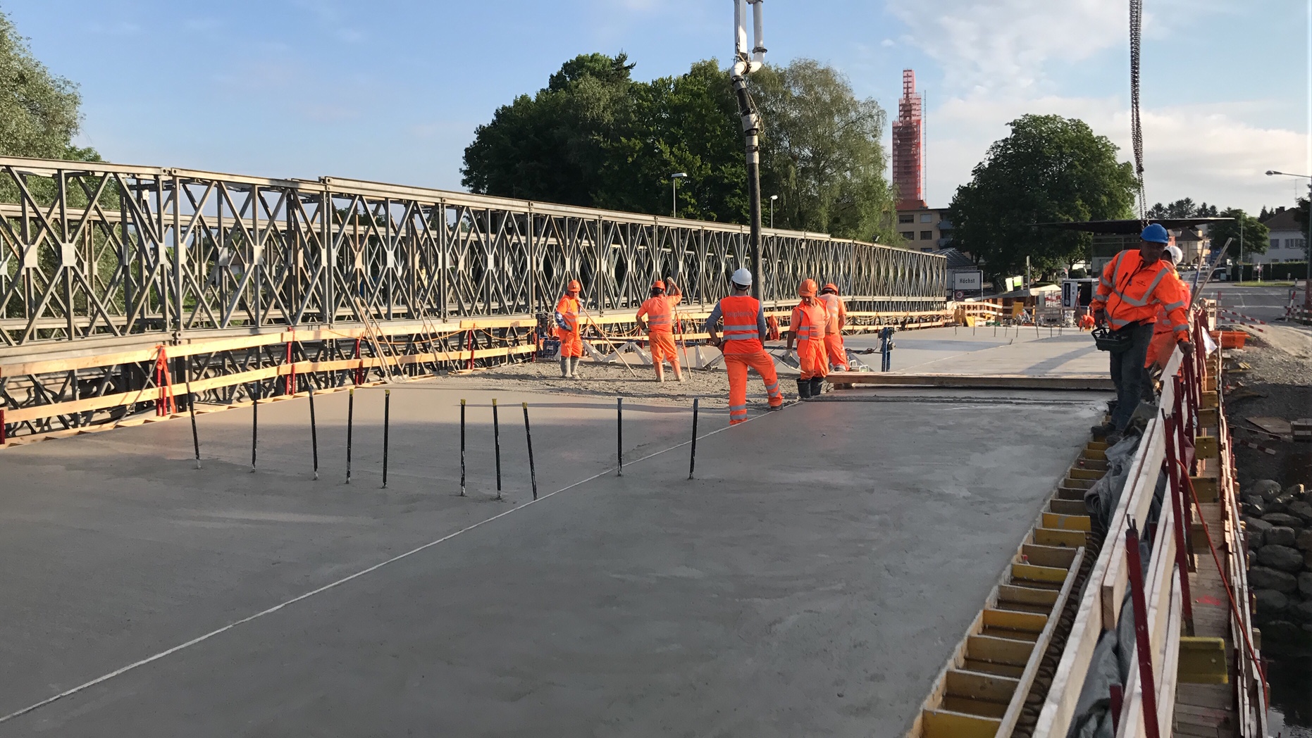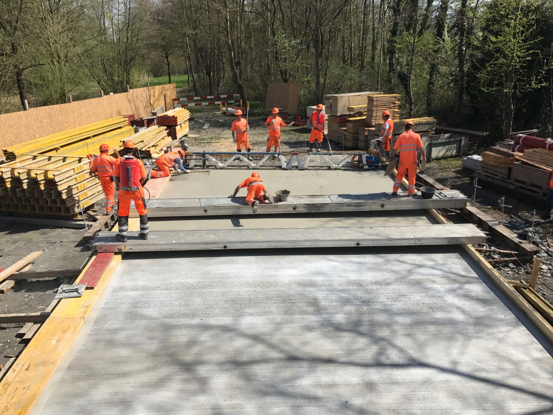 Hinzu kamen diverse Anforderungen an die Betonsorten. Vom schnellhärtenden Beton, welcher mit Beschleuniger innert weniger Stunden erhärtete, über Luftporenbeton mit Sichtanforderungen, bis zum speziellen Fahrbahnbeton, welcher mit einem Schwindmass von 3‰ sowie Zuschlagsstoffen mit PSV 50 erstellt werden musste, war das Leistungspektrum sehr gross.
