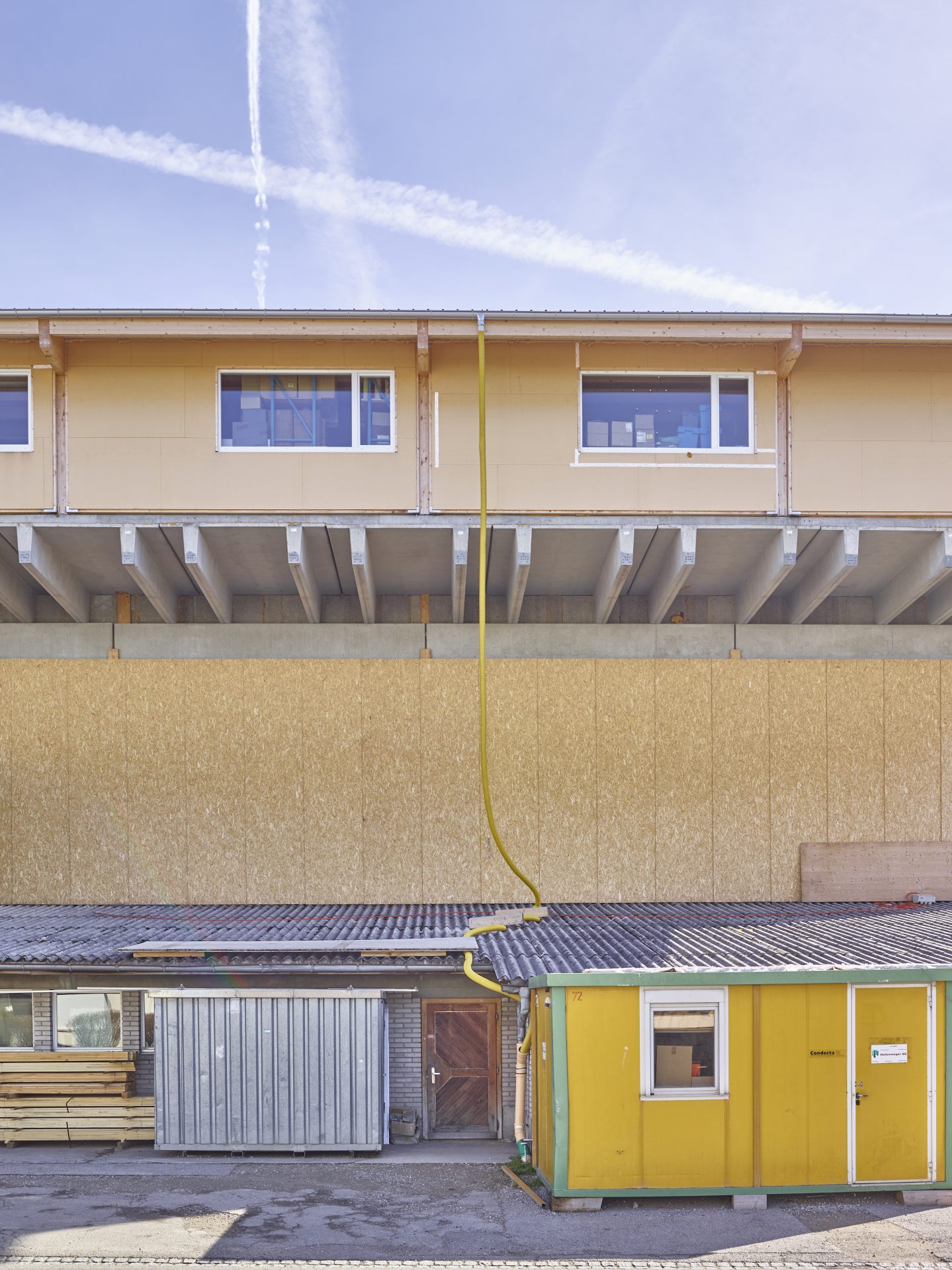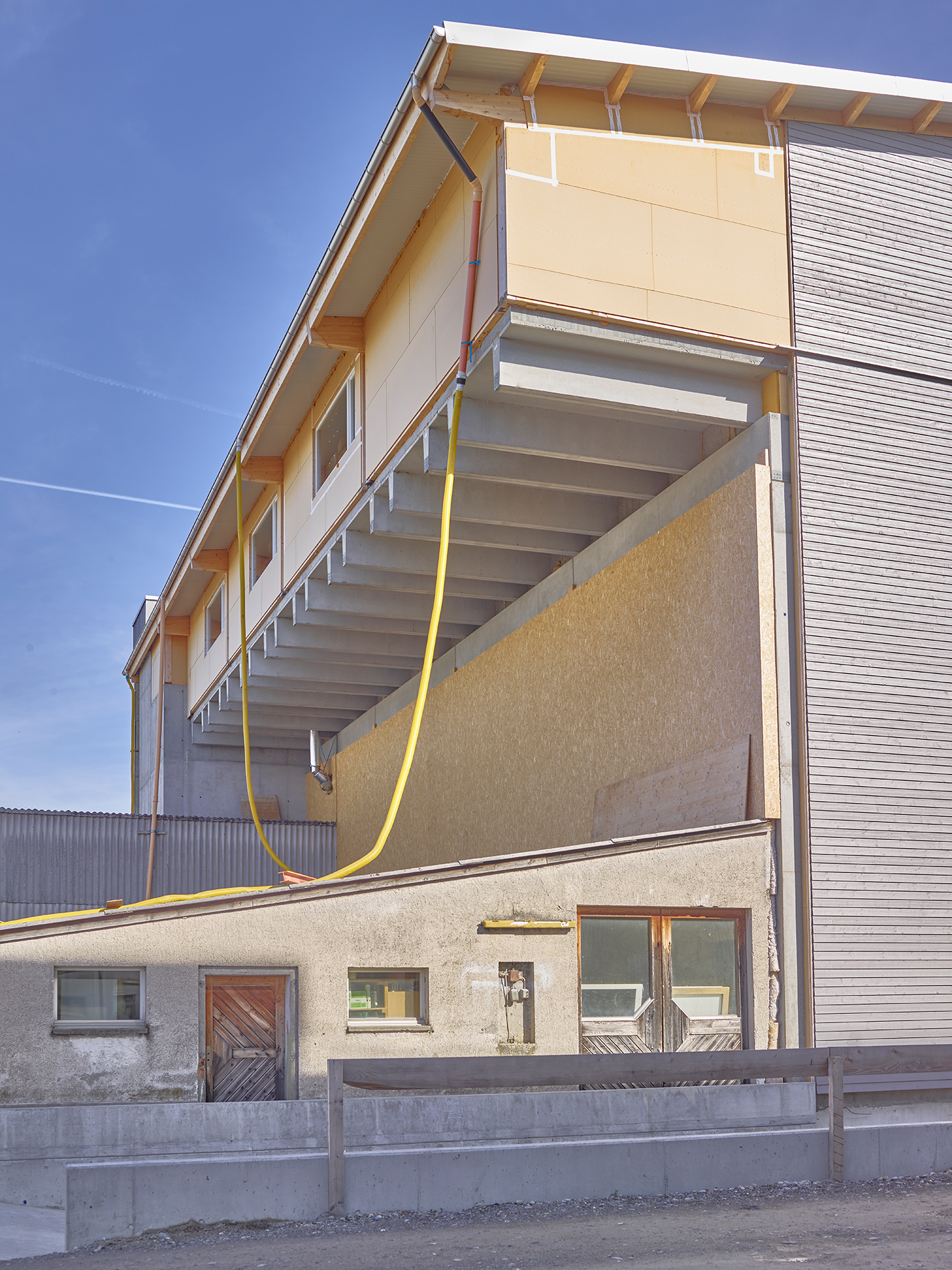 Jedes Geschoss wurde in einer anderen Bauweise ausgeführt (Ortbeton-, Betonskelett- und Holzbauweise)