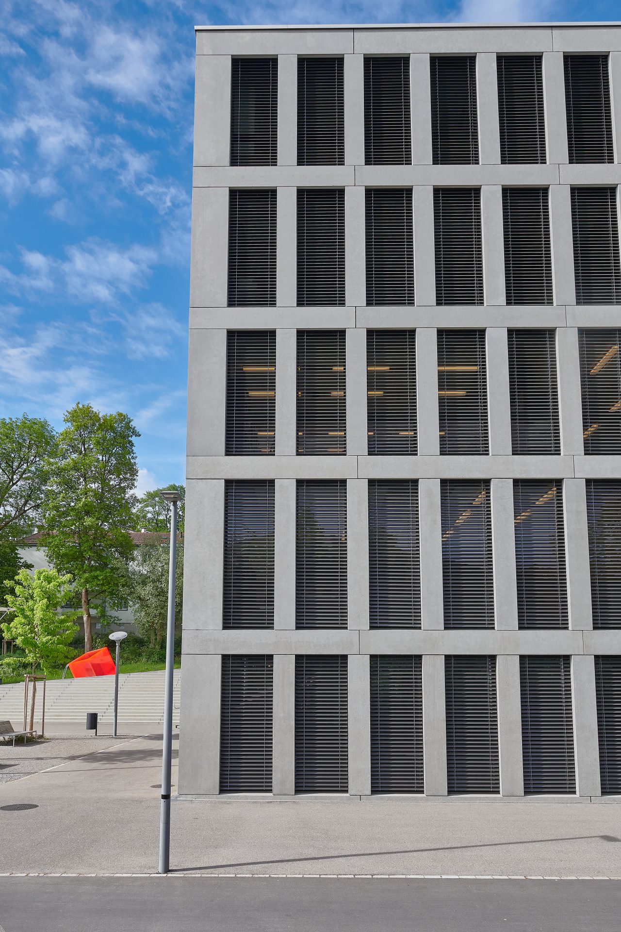 Das Projekt für den Erweiterungsbau der Kantonsschule Büelrain Winterthur ergänzt den bestehenden Schulhausbau aus dem Jahre 1992. Es verleiht der Gesamtanlage einen selbstbewussten und öffentlichen Auftritt. Zwischen Eulach und Heiligberg gesetzt, gliedert der Neubau gegensätzliche, städtische Aussenräume und belässt die landschaftliche Durchlässigkeit. Das umfangreiche Raumprogramm wird zu einem beziehungsreichen Gefüge zusammengeführt. Die 40 Klassenzimmer mit Naturwissenschaftsräumen, eine Mediothek und die Einfachturnhalle schaffen eine lebendige Innenwelt. Die mit Oblichtern erhellte Treppenhalle bildet im Kern einen grosszügigen und offenen Begegnungsraum. Das regelmässige Grundraster schafft Ordnung und prägt das Gebäude innen und aussen. Eine direkte und reduzierte Materialisierung vermittelt das Bauwerk in seiner konstruktiven und räumlichen Konsequenz.