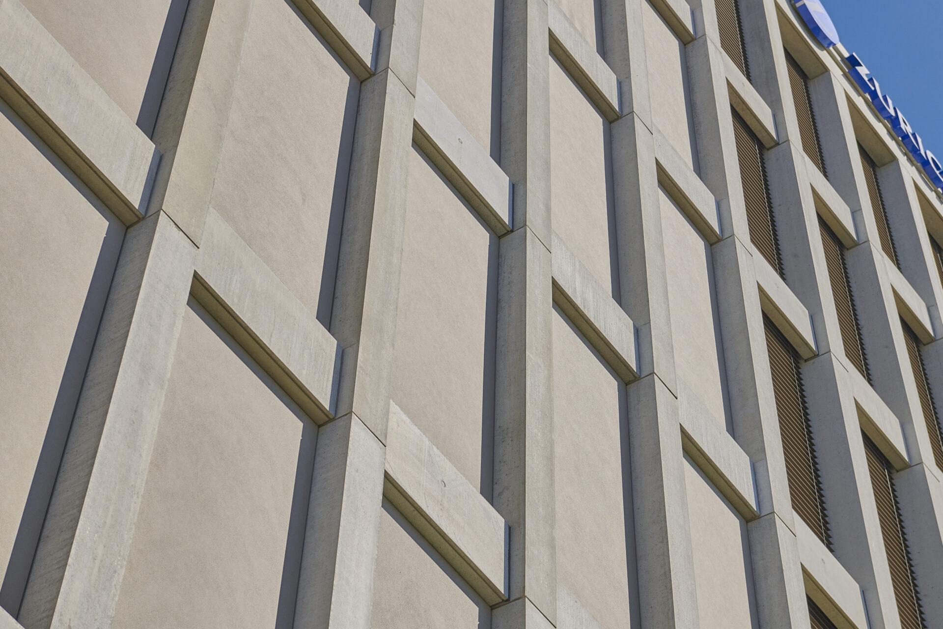 • rund 615 Elemente (Fassadenplatten, Unterdach-, Brüstungs- und Glasfaserbetonelemente)