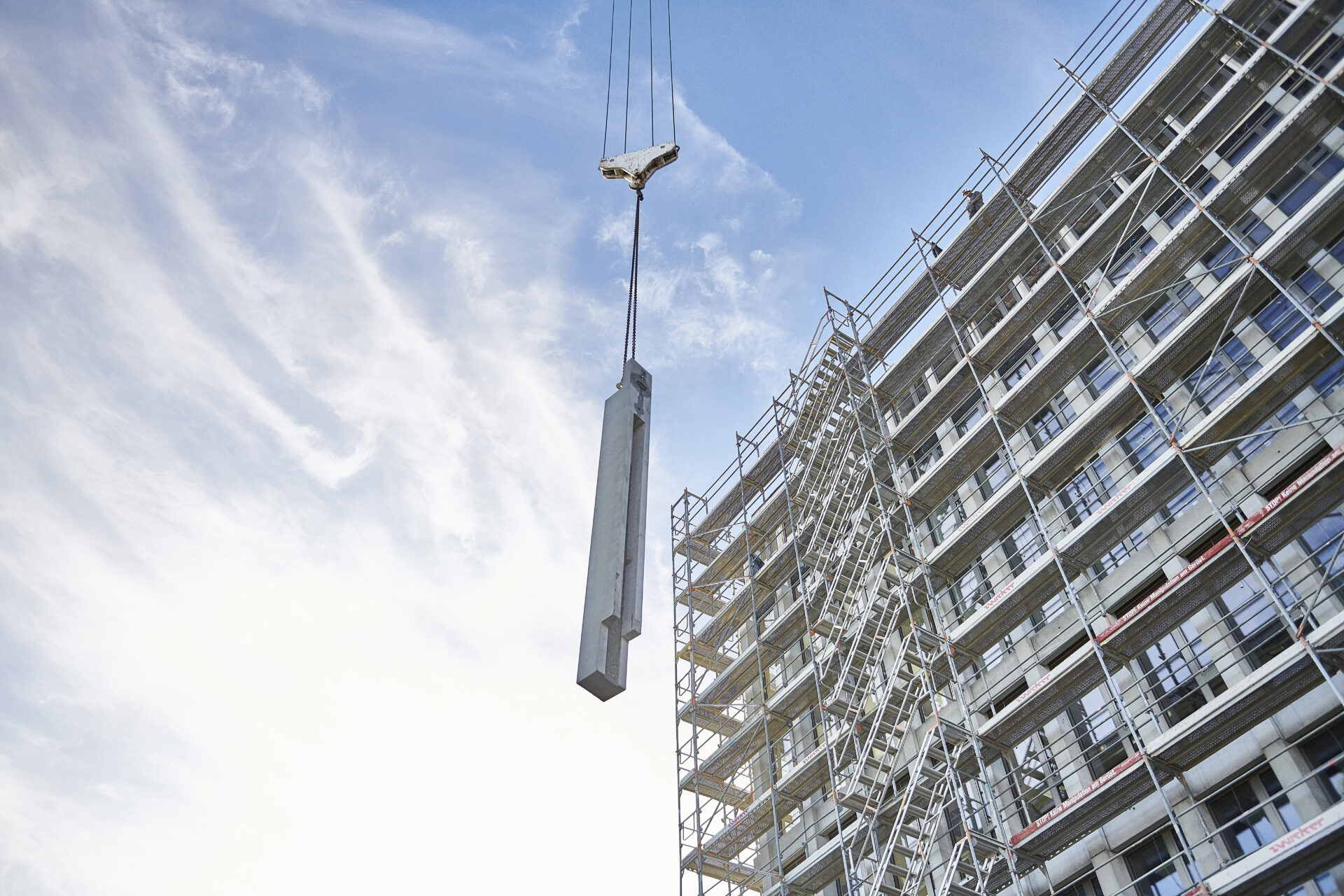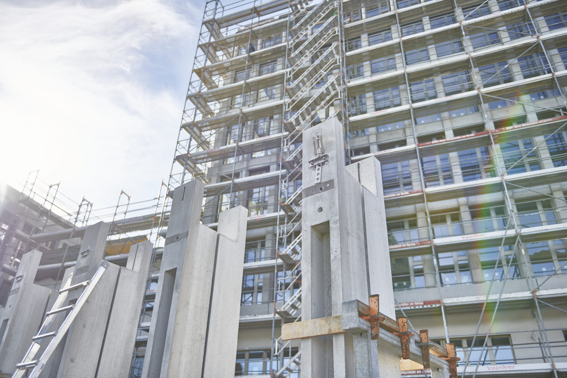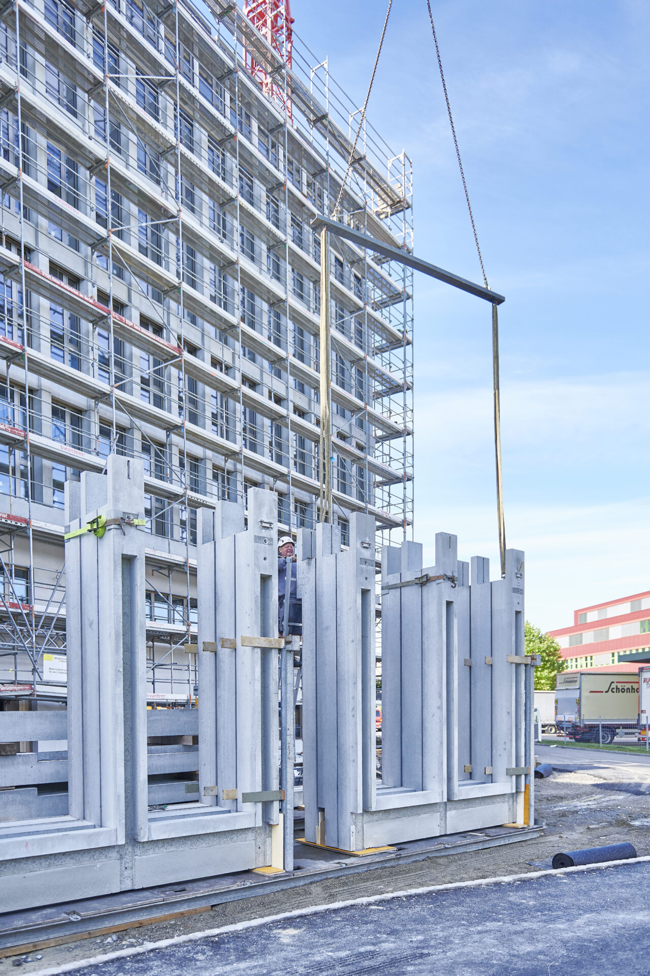 Montage von Füllelementen aus Glasfaserbeton (Herstellung & Lieferung durch GFT Fassaden AG, St. Gallen)